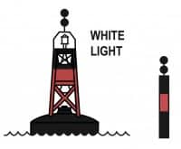 Fairway Buoy – Is used to mark safe water and is usually used to mark a channel entrance, the center of a shipping channel, or a landfall. This buoy indicates that there is safe water to pass on either side but it should be kept to the port (left) side of your vessel when proceeding upstream or downstream. It is painted half in red and half in white.