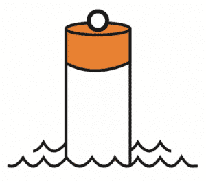 Diving Buoy – Is used to mark areas where scuba or other diving is in progress. This buoy is white in colour. It carries a red flag not less than 50 cm squared with a white diagonal stripe extending from the tip of the hoist to the bottom of the fly.